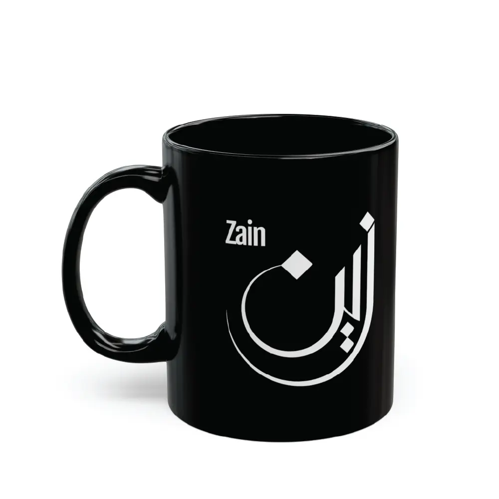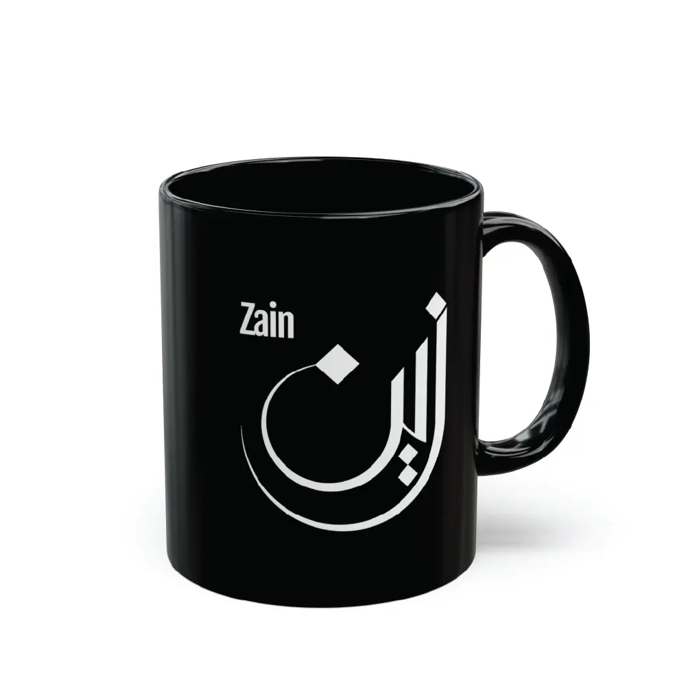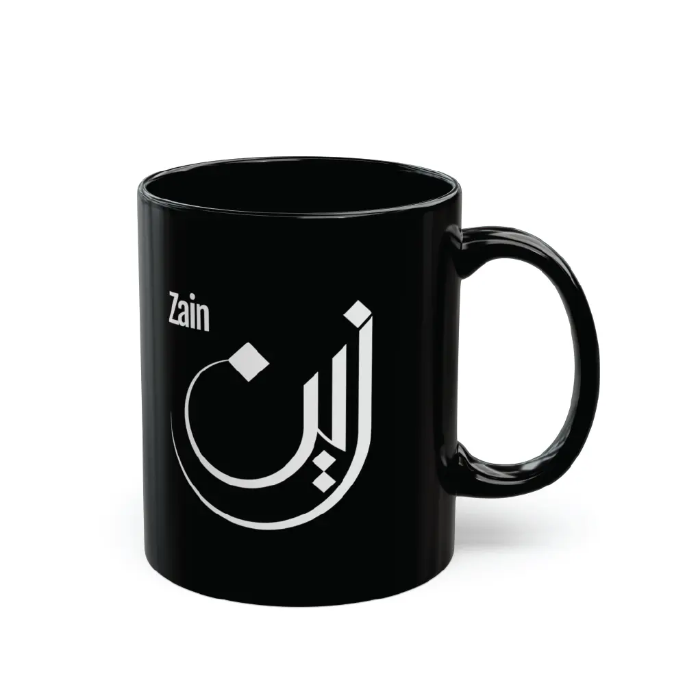 Zain – Personalized Arabic Calligraphy Signature Black Mug — Bespoke Fusion Art